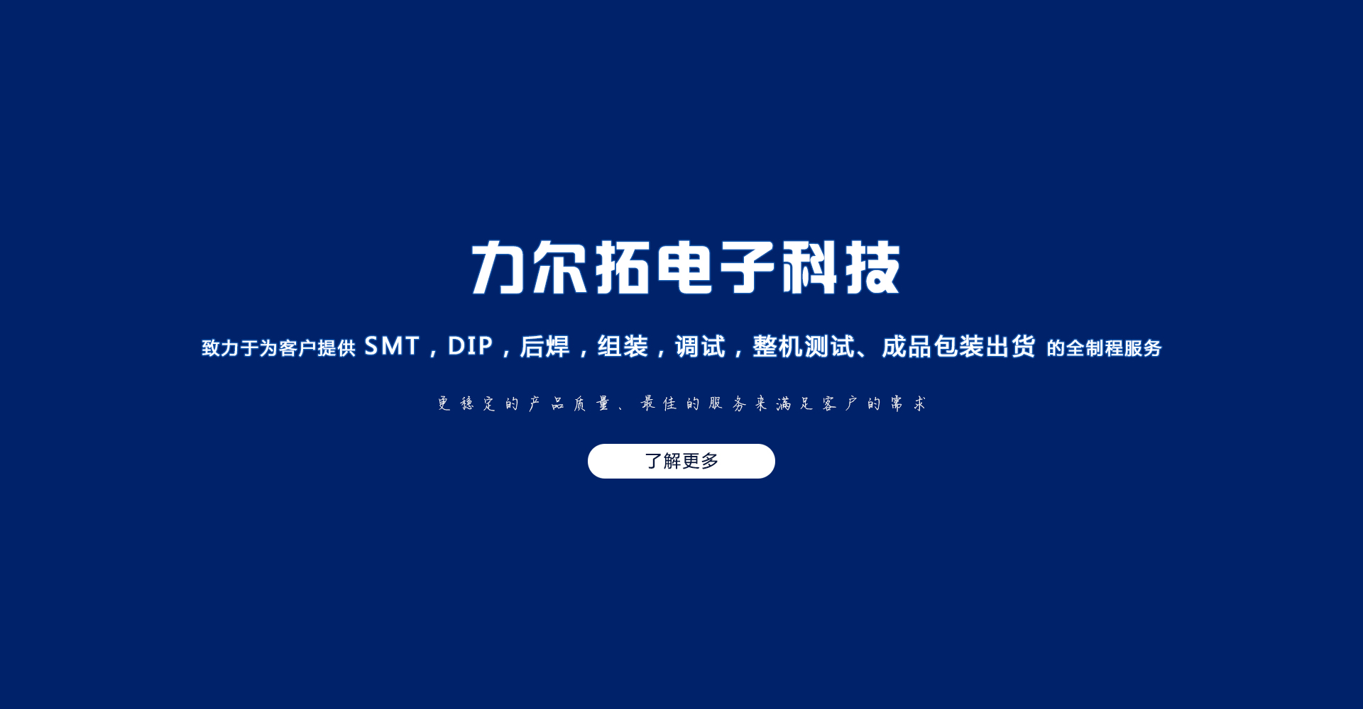 苏州力尔拓电子科技有限公司成立于2009年,定位于专业的EMS (Electronic Manufacture Service )企业,致力于为客户提供SMT,DIP,后焊,组装,调试,整机测试、成品包装出货的全制程服务;已通过ISO9001:2015、IATF16949、SGS认证,遵照执行IPC-A-610E电子验收标准。